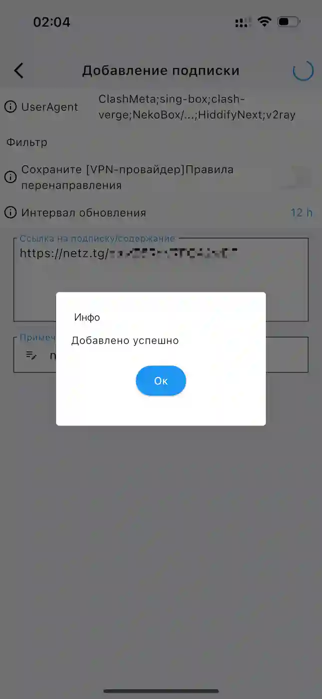 Скопируйте ссылку (Subscription URL) из бота.
