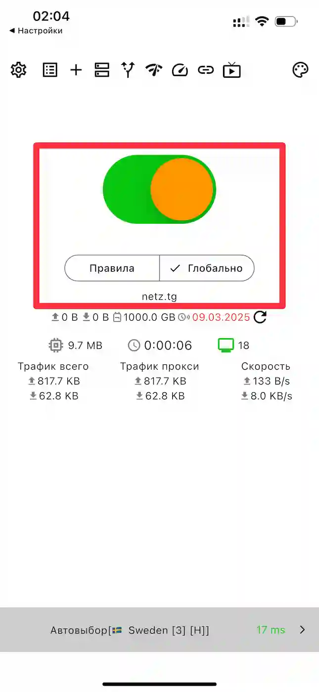 Включение/выключение VPN