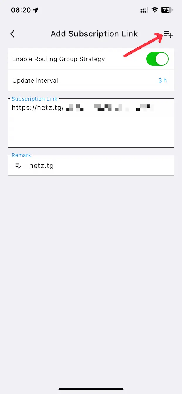 Paste the link you copied earlier (Subscription URL) into the Subscription Link field.
